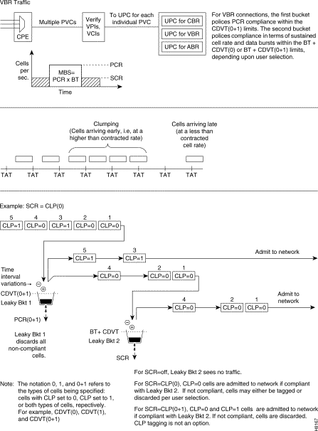 - Usage Parameter Control using leaky bucket algorithm to command admission to the network.